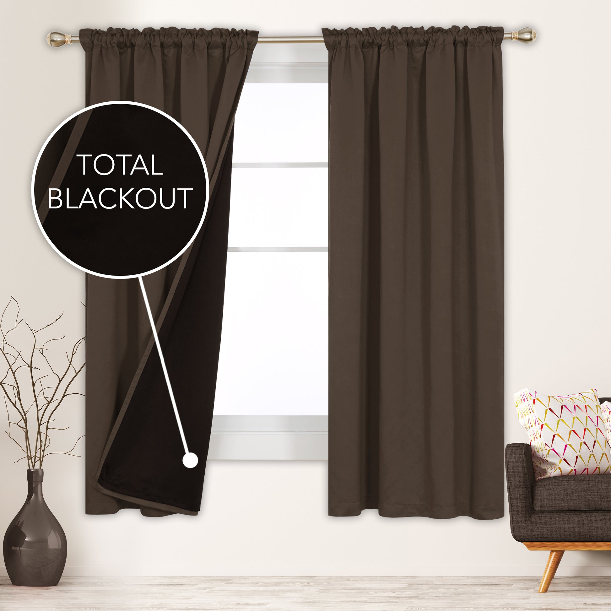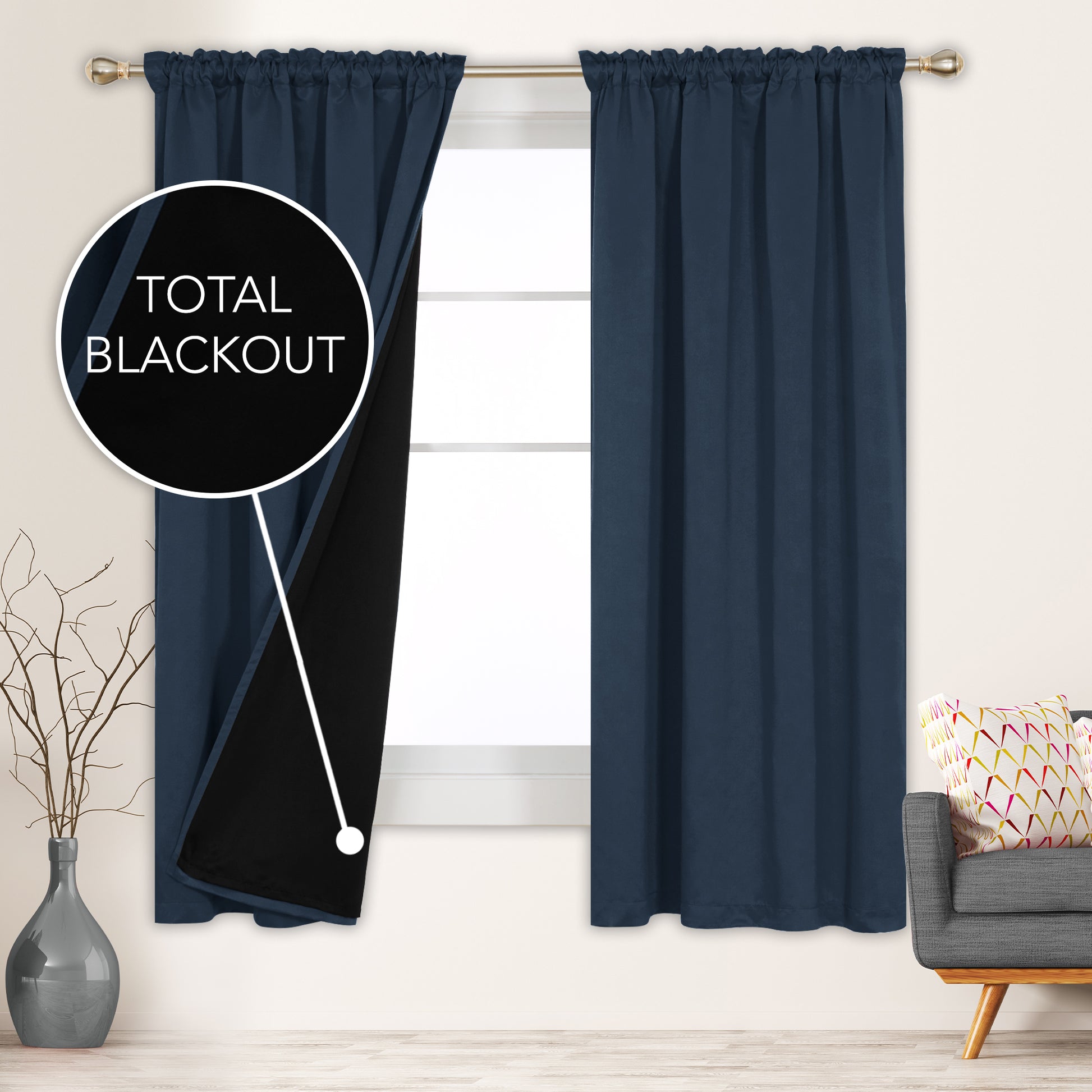 Deconovo ModernLuxury BlackOut RodCurtains For LivingRoom or BedRoom,Easy Clean,2Panels